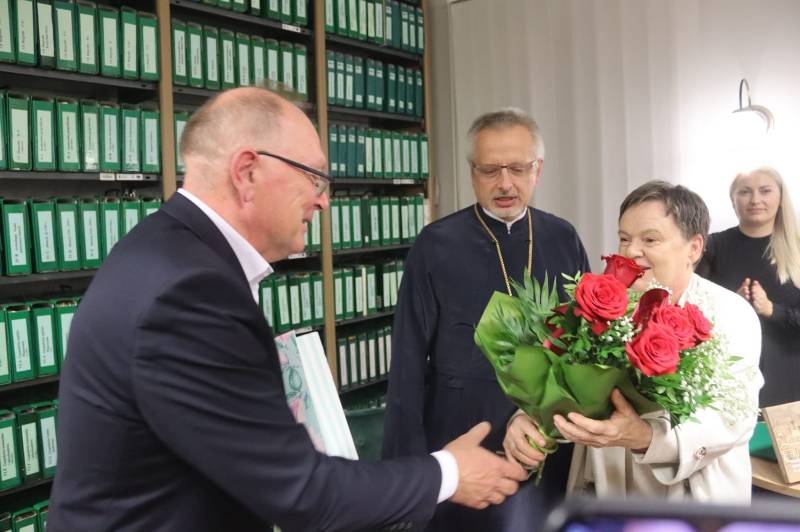 Gratulacje prelegentowi złożyli: prezydent miasta Michał Litwiniuk oraz ks. prof. Andrzej Pugacewicz z ks. Marcinem Gościkiem.