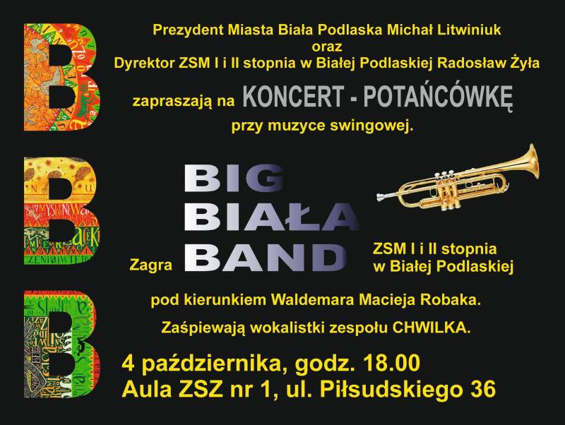 Prezydent miasta Michał Litwiniuk oraz dyrektor Zespołu Szkół Muzycznych I i II stopnia im. Fr. Chopina w Białej Podlaskiej Radosław Żyła zapraszają na potańcówkę przy muzyce swingowej.