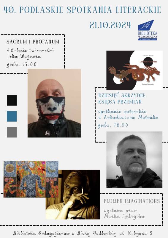 - o godzinie 18:00 - "Dziesięć skrzydeł. Księga przemian" - spotkanie autorskie z Arkadiuszem Mateńko,