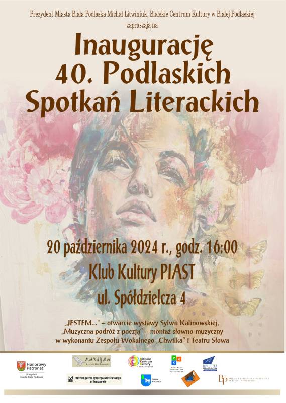 Prezydent miasta Michał Litwiniuk, Bialskie Centrum Kultury oraz Bialski Klub Literacki "Maksyma" zapraszają na jubileuszową, 40. edycję Podlaskich Spotkań Literackich.