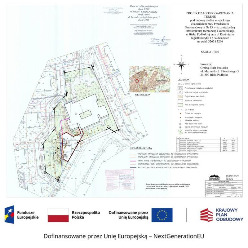 To kolejne 75 nowych miejsc opieki w ramach programu „Aktywny Maluch 2022-2029 - edycja 1 w Żłobku Miejskim, ul. Kazimierza Jagiellończyka 17, 21-500 Biała Podlaska”. Dofinansowanie pochodzi ze środków finansowych z Krajowego Planu Odbudowy oraz budżetu państwa w ramach Programu rozwoju instytucji opieki nad dziećmi w wieku do lat 3 „Aktywny Maluch 2022-2029 - edycja 1”. W ramach zadania zaplanowano zakres rzeczowy, obejmujący prace budowlane, wykonanie placu zabaw wraz z zagospodarowaniem otoczenia, a także zakup i montaż niezbędnego wyposażenia oraz zabawek i pomocy do prowadzenia zajęć opiekuńczo-wychowawczych i edukacyjnych. W ramach prac zostanie wykonana budowa nowego budynku Żłobka Miejskiego, który zostanie połączony łącznikiem z obecnym budynkiem Przedszkola Samorządowego Nr 13. Całościowo metraż nowego obiektu wyniesie 872,53 m2 powierzchni użytkowej, na dwóch kondygnacjach powstanie 49 pomieszczeń przewidzianych dla nowego żłobka.