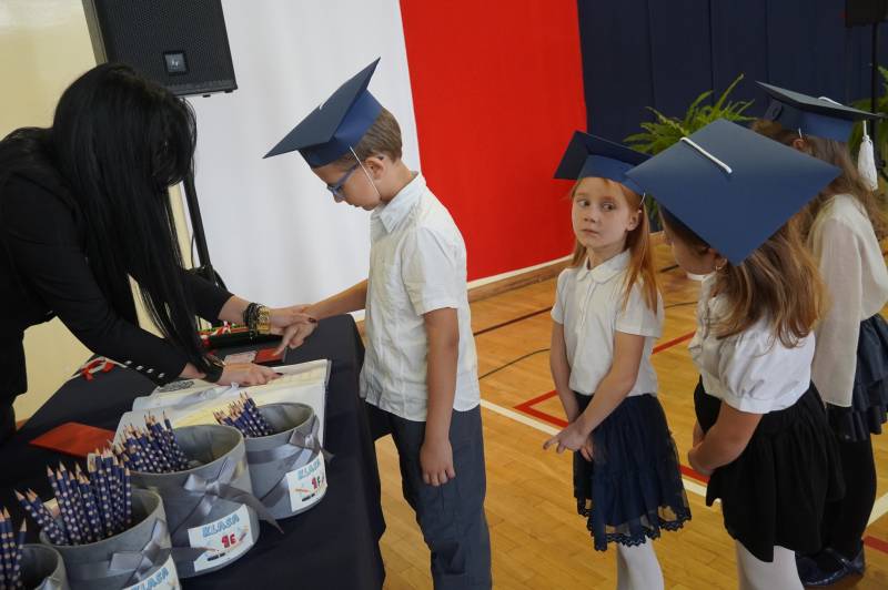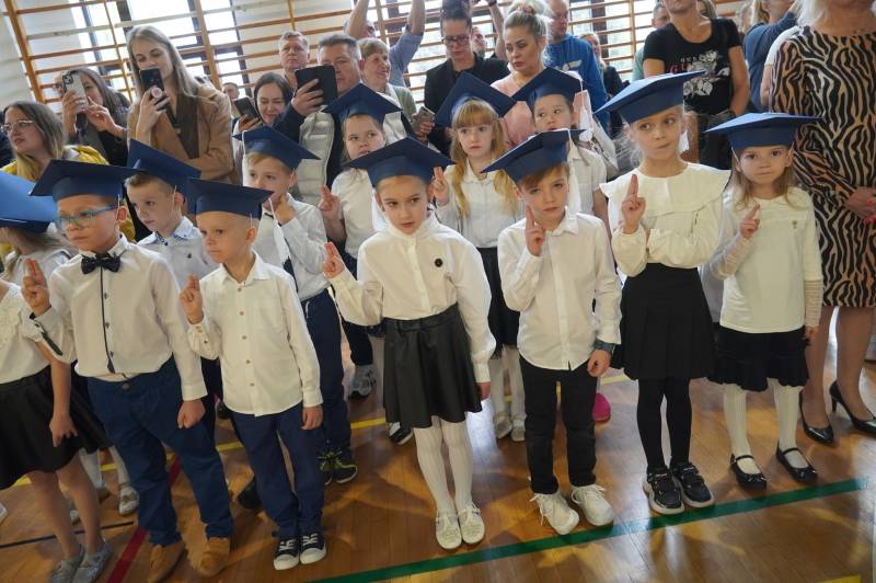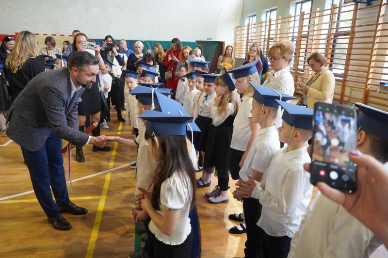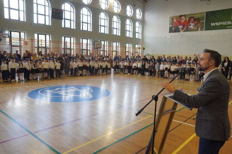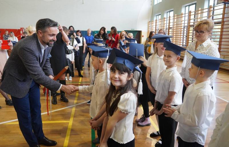 Uroczystego pasowania dokonał prezydent miasta Michał Litwiniuk życząc pierwszoklasistom wielu przygód na nowej, szkolnej drodze a rodzicom - dobrej i owocnej współpracy z nauczycielami oraz wychowawcami.
