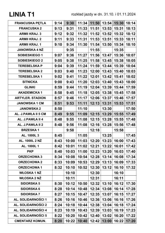 Świąteczny rozkład jazdy autobusów MZK Biała Podlaska