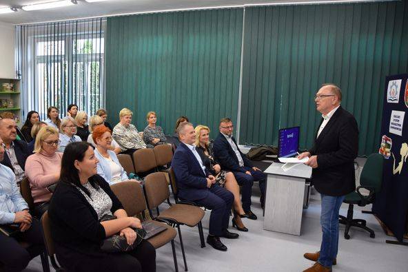 Naczelnik Wydziału Edukacji i Spraw Społecznych dr Stanisław Romanowski omówił kierunki działania w ramach Bialskiego Systemu Doradztwa Zawodowego, na rok szkolny 2024/2025.