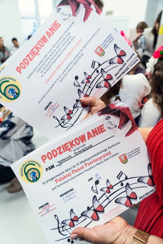 IX Międzyprzedszkolny Konkurs Polskiej Pieśni Patriotycznej zorganizowało Przedszkole Samorządowe nr 6 w Białej Podlaskiej. Wystąpiło 56 zdolnych wokalistów i decyzją jury wszyscy otrzymali nagrody. Wręczył je, w imieniu Prezydenta Miasta Michała Litwiniuka, Naczelnik Wydziału Edukacji i Spraw Społecznych dr Stanisław Romanowski
