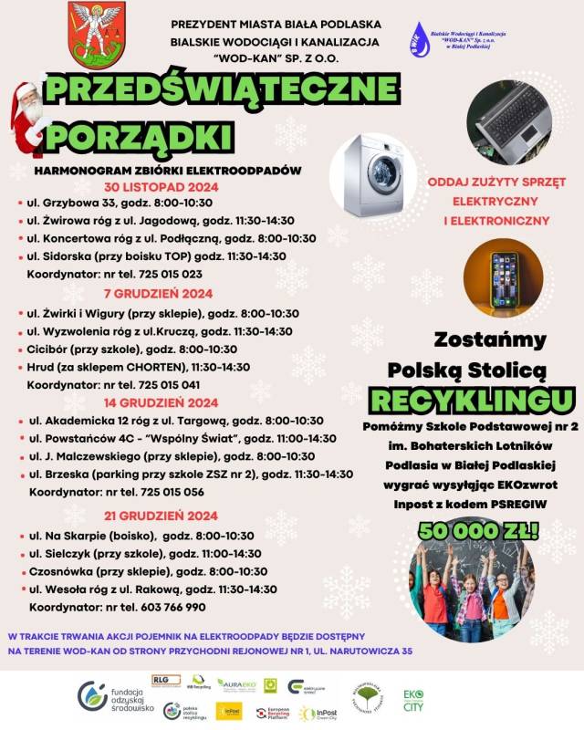 Możemy to zrobić angażując się w akcję Szkoły Podstawowej nr 2 im. Bohaterskich Lotników Podlasia i bezpłatnie nadać ekozwroty lub rozpocząć w swoich domach przedświąteczne porządki i pozbyć się elektroodpadów.