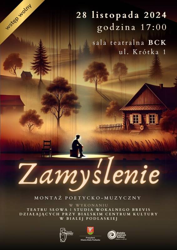 Zapraszamy na montaż słowno - muzyczny pt. „Zamyślenie", w wykonaniu Teatru Słowa oraz Studia Wokalnego "Brevis" działających przy Bialskim Centrum Kultury.
