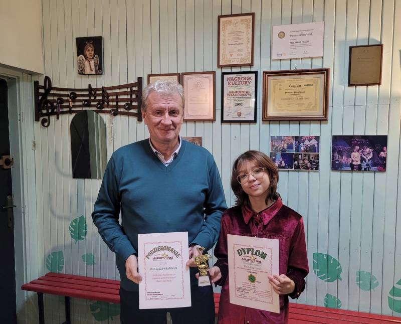 Gratulujemy Michalinie Cyran, wokalistce zespołu wokalnego "Chwilka", która podczas Międzynarodowego Festiwalu Antares Fest w Przygodzicach koło Ostrowa Wielkopolskiego zdobyła dwa pierwsze miejsca za wykonanie piosenki Summertime – kategoria jazz i Derniere Dance w kategorii pop.