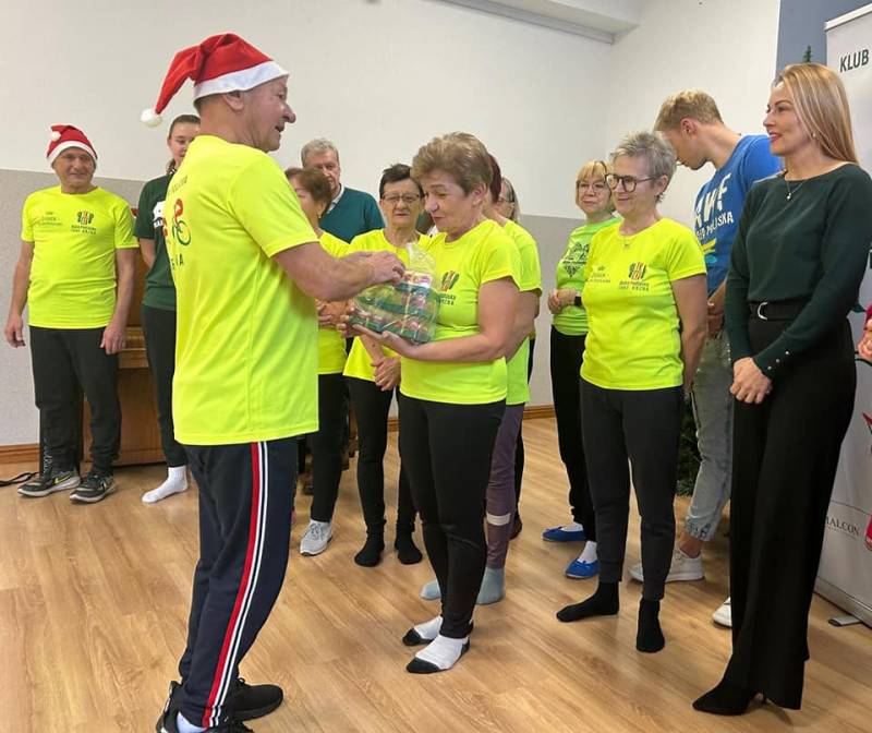 Podczas poniedziałkowych ćwiczeń organizowanych w Klubie Kultury PIAST przez Klub TKKF Krzna Biała Podlaska seniorów odwiedził święty Mikołaj z upominkami dla uczestników zajęć.