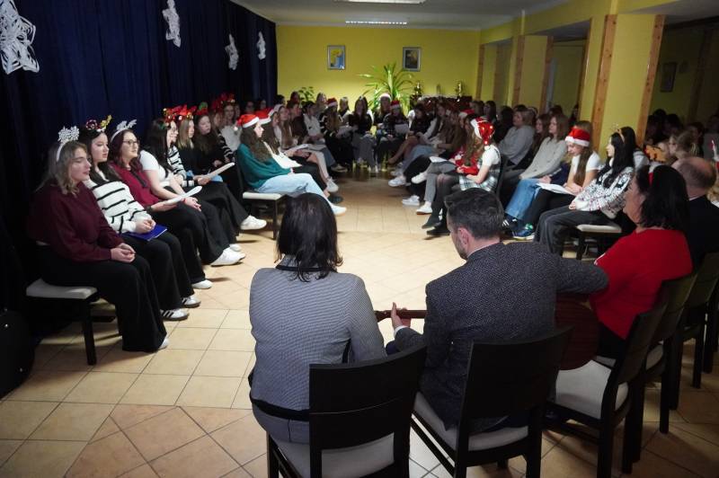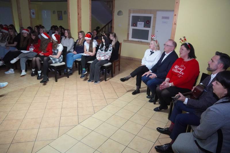 Z uczennicami kolędowali prezydent miasta Michał Litwiniuk, naczelnik Wydziału Edukacji i Spraw Społecznych dr Stanisław Romanowski oraz dyrektor szkoły Iwona Jarocka. Wieczór wypełniły rozmowy o zwyczajach świątecznych w domach rodzinnych i o ulubionych potrawach wigilijnych.