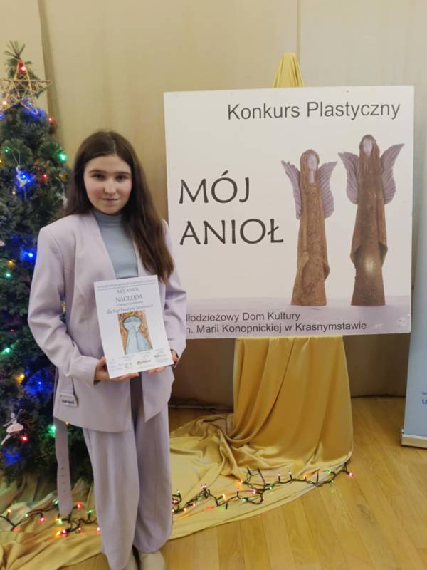 Inga Faustyna Jarosiewicz zdobyła nagrodę w XIII Wojewódzkim Konkursie Plastycznym i Literackim "Mój Anioł. Tajemnica", organizowanym przez Młodzieżowy Dom Kultury w Krasnymstawie. Zwycięzcy konkursu zostali wybrani spośród 1524 zgłoszonych prac plastycznych.