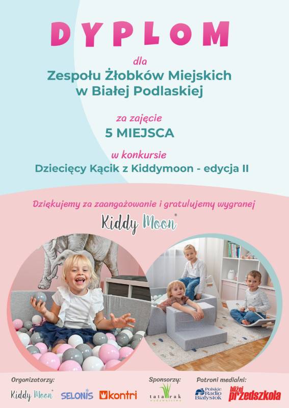 Tym razem to 5. miejsce w konkursie “Dziecięcy Kącik z KiddyMoon”. Na naszą placówkę głos oddało 11337 osób.