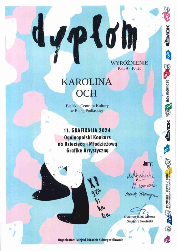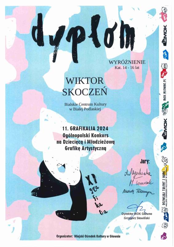 W XI Ogólnopolskim Konkursie na dziecięcą i młodzieżową grafikę GRAFIKALIA 2024, którego organizatorem był Miejski Ośrodek Kultury w Głownie, aż 3 młodych artystów z pracowni Piksel działającej w Bialskim Centrum Kultury zostało laureatami.