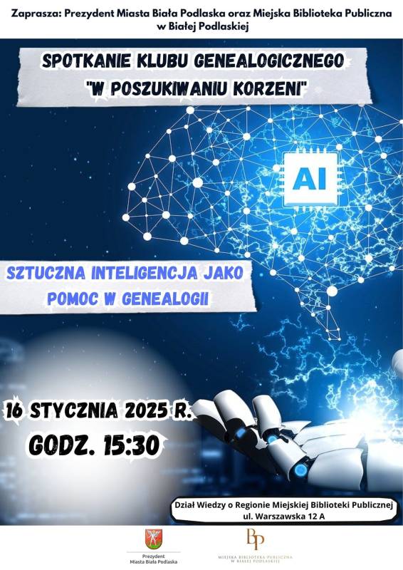 Uczestnicy spotkają się w Dziale Wiedzy o Regionie i porozmawiają o tym jak sztuczna inteligencja może być wykorzystywana w genealogii.