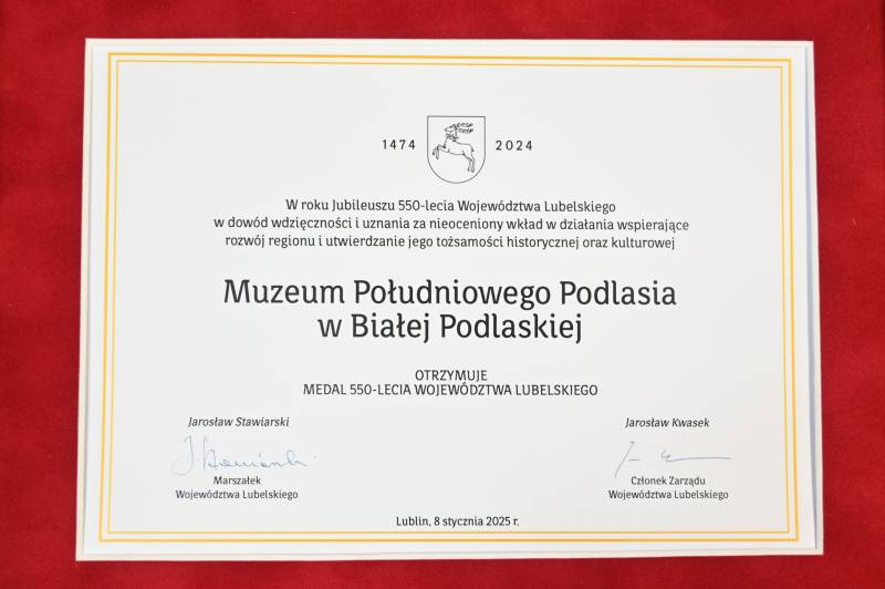 Podczas jubileuszu 550-lecia Województwa Lubelskiego w Centrum Spotkania Kultur w Lublinie odbyło się podsumowanie roku, a szczególnie wyróżnienie otrzymało Muzeum Południowego Podlasia.