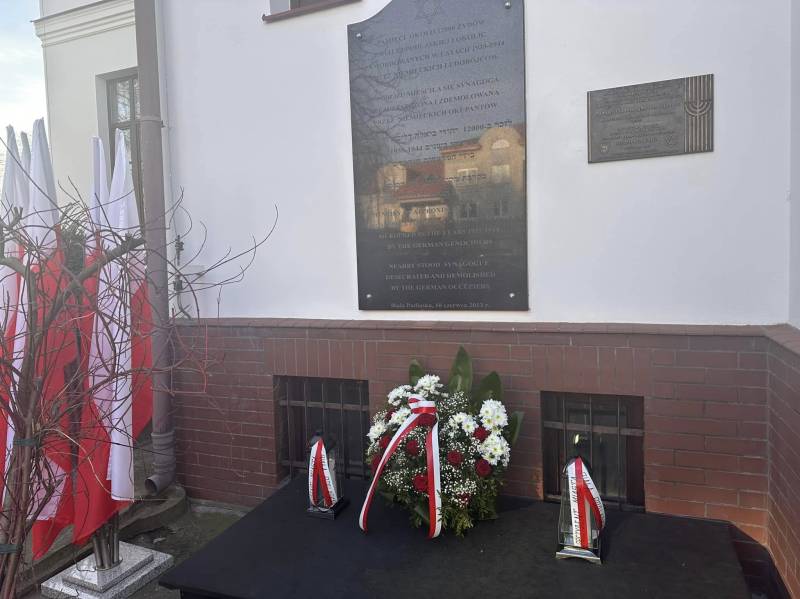Prezydent Michał Litwiniuk, zastępca prezydenta Justyna Gorczyca, naczelnik Wydziału Kultury, Sportu i Współpracy z Organizacjami Beata Demianiuk, naczelnik Wydziału Edukacji i Spraw Społecznych dr Stanisław Romanowski, komendantka Hufca ZHP Biała Podlaska "Rubież" hm. Marta Kucharska, płk Artur Artecki i komendant Straży Miejskiej Henryk Nędziak złożyli kwiaty na ul. Sadowej przy tablicach upamiętniających ofiary Holokaustu.