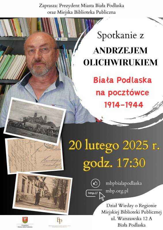 Spotkanie z Andrzejem Olichwirukiem, podczas którego zostaną zaprezentowane pocztówki z naszego regionu, odbędzie się 20 lutego br. o godzinie 17:30 w Dziale Wiedzy o Regionie Miejskiej Biblioteki Publicznej.