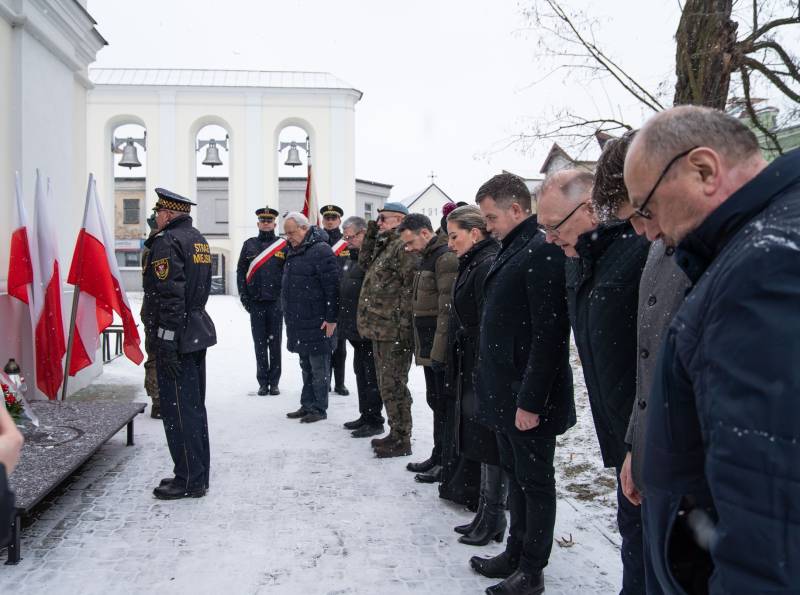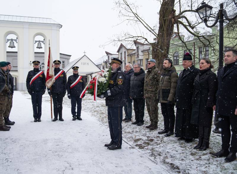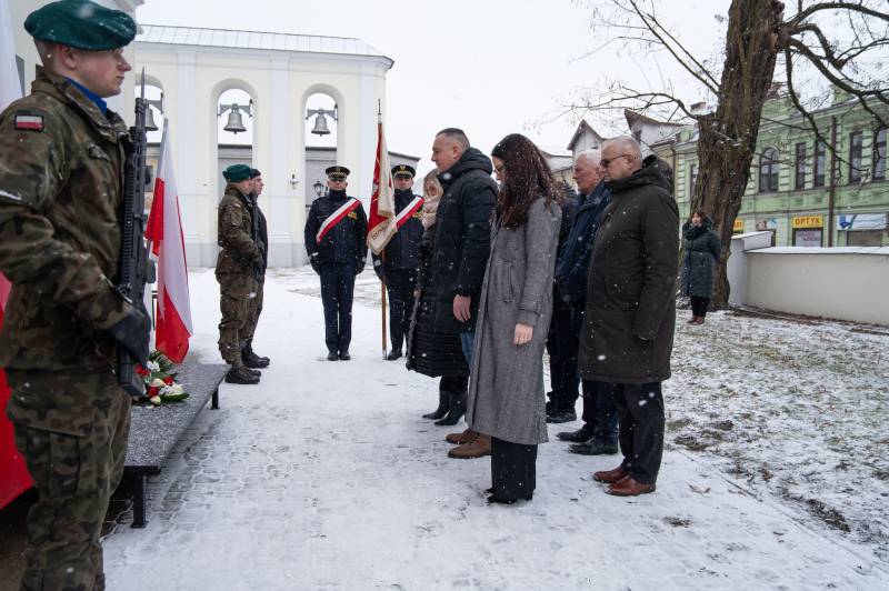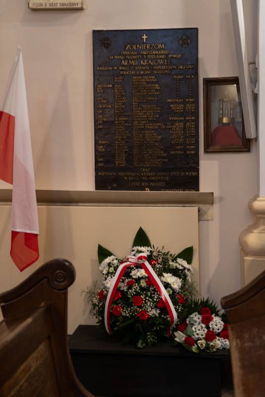 Kwiaty przy tablicach poświęconych żołnierzom OP Lecha 34. PP Armii Krajowej w Akcji "Burza" w dn. 20-26.VII.1942 r. oraz żołnierzom Oddziału Partyzanckiego 34 PP 9. Podlaskiej Dywizji Armii Krajowej, zlokalizowanych na ścianie kościoła św. Anny oraz w jego wnętrzu, złożyli dziś prezydent miasta Michał Litwiniuk, wiceprezydent Justyna Gorczyca, naczelnik Gabinetu Prezydenta Wojciech Sosnowski, naczelnik Wydziału Edukacji i Spraw Społecznych dr Stanisław Romanowski, naczelnik Wydziału Kultury, Sportu i Spraw Społecznych Beata Demianiuk, radni, opiekunowie miejsc pamięci: Grzegorz Jobda i Andrzej Olichwiruk, w asyście Straży Miejskiej, żołnierzy Batalionu Transportowego 18. Łomżyńskiego Pułku Logistycznego im. gen. bryg. Mariana Raganowicza oraz klasy mundurowej II LO im. Emilii Plater w Białej Podlaskiej.