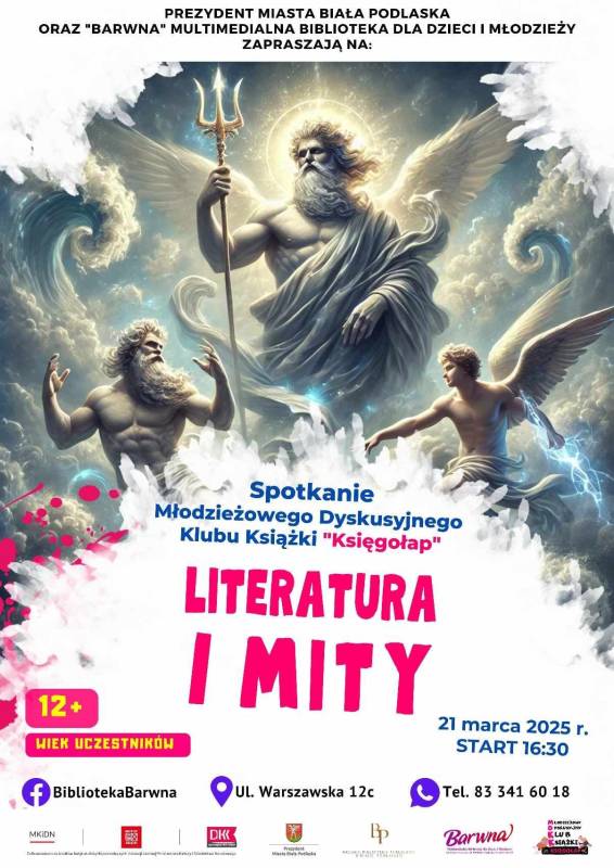 Kolejne spotkanie Młodzieżowego Dyskusyjnego Klubu Książki "Księgołąp" odbędzie się 21 marca o godz. 16:30. Tym razem czytelnicy wybiorą się w świat mitologii i porozmawiają o literaturze oraz mitach.