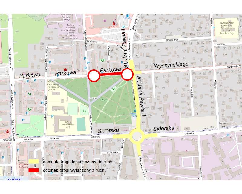 Na skrzyżowaniu ulic Parkowej i al. Jana Pawła II będą trwały prace związane z przebudową kanalizacji deszczowej. W związku z tym ul. Parkowa na odcinku od ul. Mickiewicza do al. Jana Pawła II zostanie wyłączona z ruchu pojazdów.