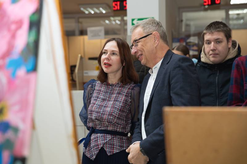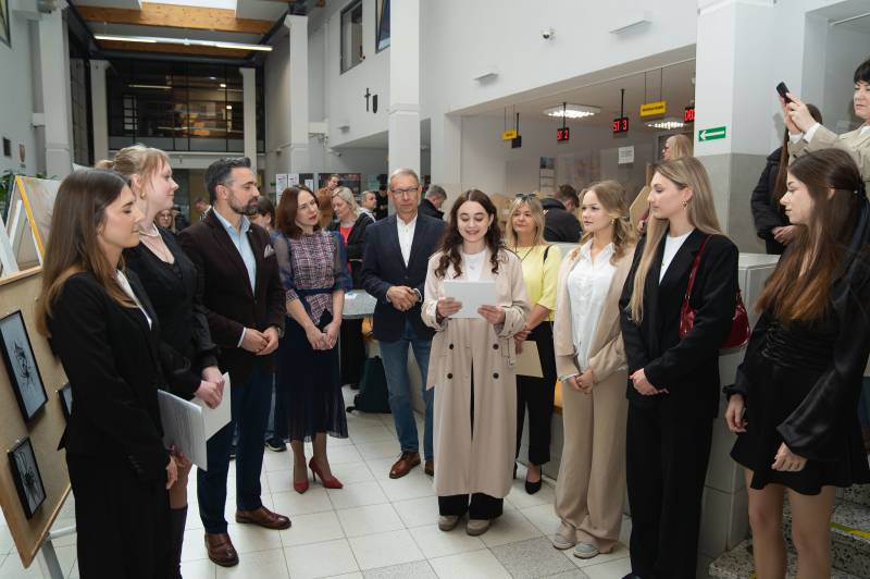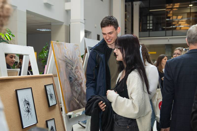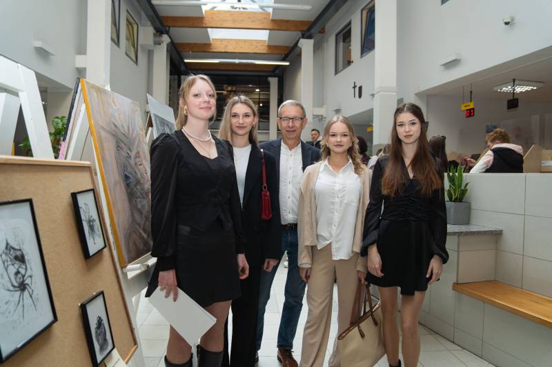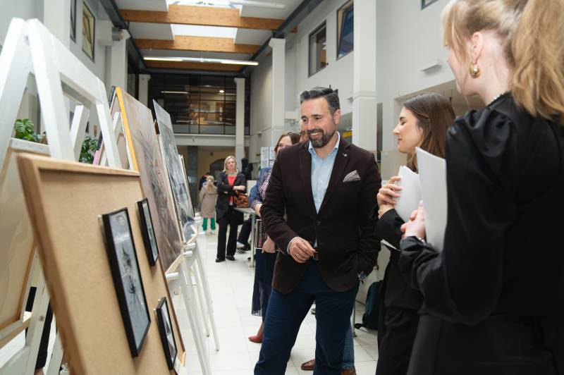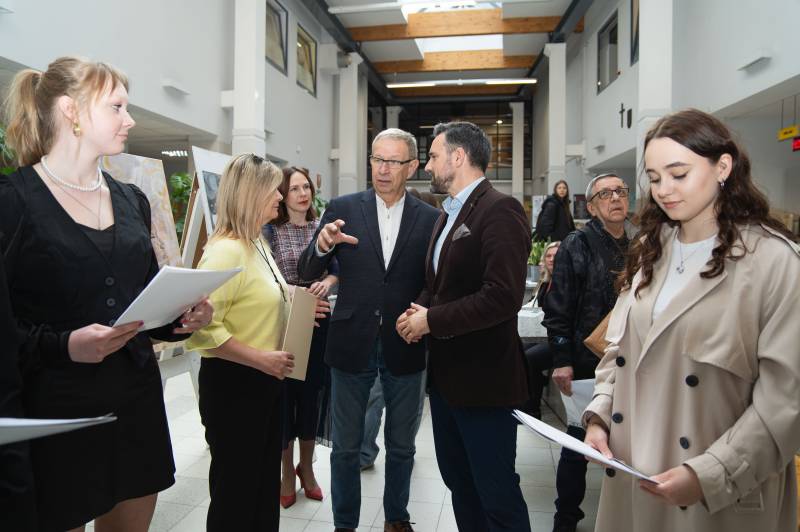 Obrazy utalentowanych uczennic I Liceum Ogólnokształcącego im. J.I. Kraszewskiego, II Liceum Ogólnokształcącego im. E. Plater i IV Liceum Ogólnokształcącego im. S. Staszica zdobią salę obsługi Urzędu Miasta.