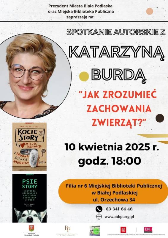 Gościem Filii nr 6 Miejskiej Biblioteki Publicznej będzie Katarzyna Burda, dziennikarka na stałe związana z tygodnikiem Newsweek i autorka książek popularnonaukowych "Kocie story”. Miłość, fascynacja i trudna sztuka wspólnego życia" oraz "Psie Story. Historia niezwykłej przyjaźni człowieka z psem".