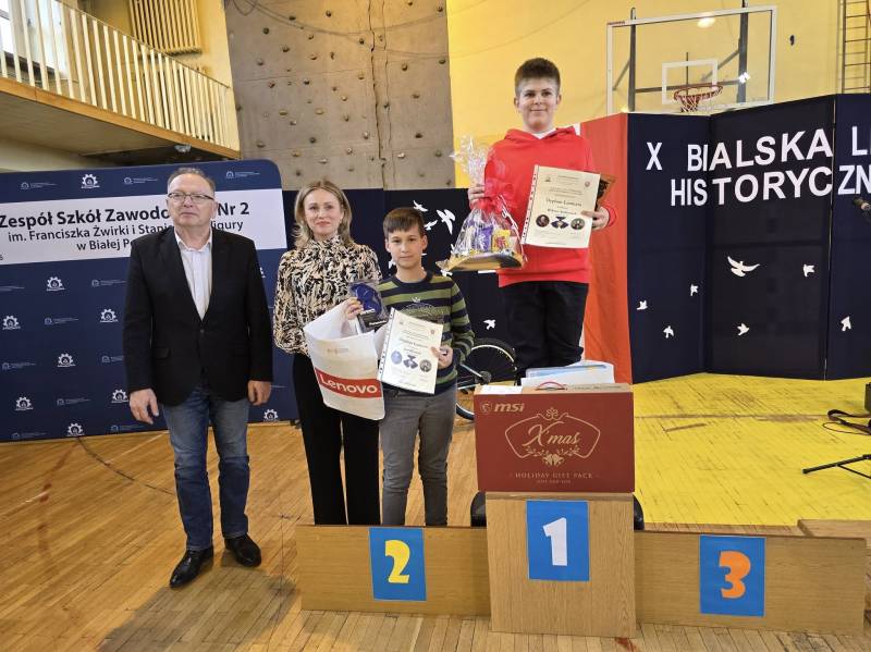 Zmagania uczniów klas 4-8 honorowym patronatem objął prezydent miasta Michał Litwiniuk, a w jego imieniu nagrody - w tym rower - i dyplomy wręczyli laureatom wiceprezydent Justyna Gorczyca oraz naczelnik Wydziału Edukacji i Spraw Społecznych dr Stanisław Romanowski.