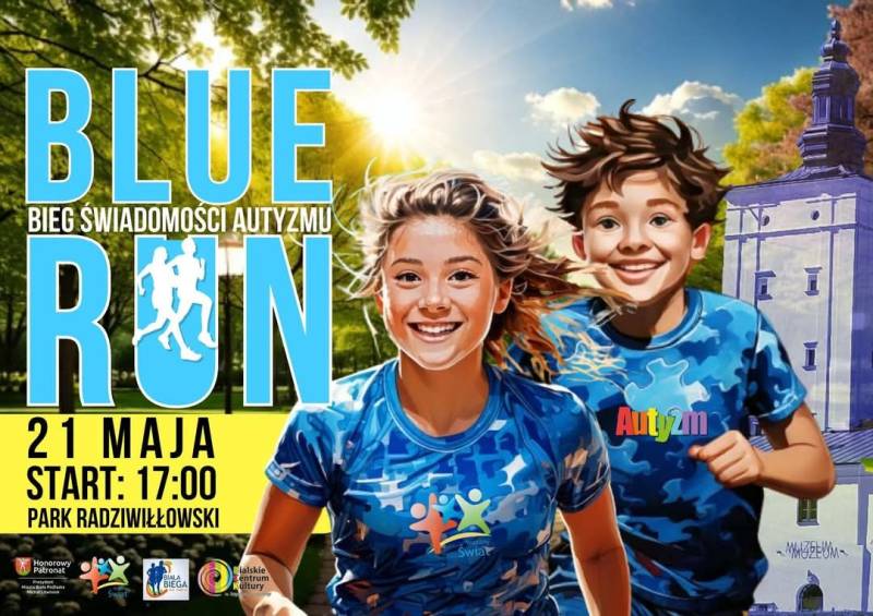 BLUE RUN – Niebieski Bieg Świadomości Autyzmu odbędzie się już 21 maja o godz. 17:00. Miejscem startu będzie założenie zamkowo-parkowe Radziwiłłów.