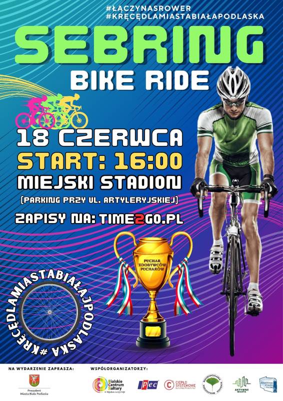 Ruszyły zapisy na Sebring Bike Ride, który odbędzie się 18 czerwca br. przy Miejskim Stadionie (parking przy ul. Artyleryjskiej). Jest to kolejne wydarzenie w ramach rywalizacji o SUPERPUCHAR długość okrążenia ok. 700 metrów pomiar czasowy na profesjonalnej bramce.
