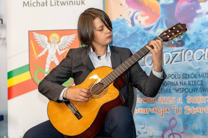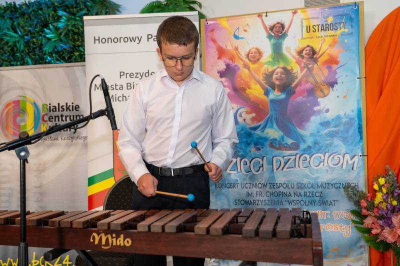 Wzruszający koncert „Dzieci Dzieciom” w wykonaniu uczniów Zespołu Szkół Muzycznych I i II stopnia na rzecz podopiecznych Stowarzyszenia Wspólny Świat. Wydarzenie zorganizowane w U starosty honorowym patronatem objął prezydent miasta Michał Litwiniuk, którego reprezentowały dziś zastępca prezydenta Justyna Gorczyca oraz rzecznik prasowa Urzędu Miasta Gabriela Kuc-Stefaniuk Podczas koncertu wystąpili nie tylko u czniowie ZSM, ale także - gościnnie - wokalistka Zuzia Janik. Uczestnicy tego wyjątkowego wydarzenia mogli podczas dzisiejszego spotkania zakupić rękodzieło podopiecznych i wychowawców Stowarzyszenia i w ten sposób wesprzeć jego działalność