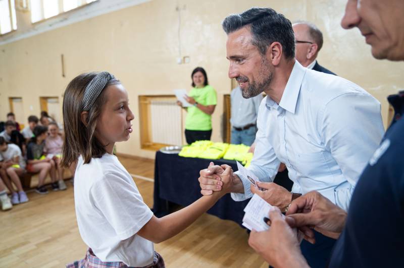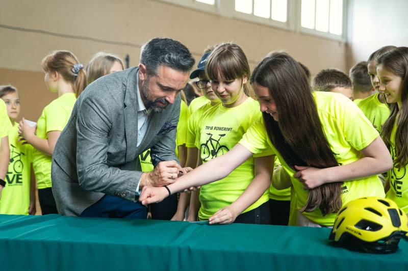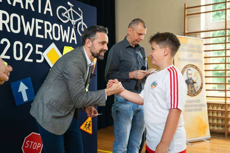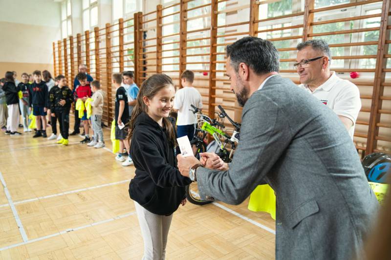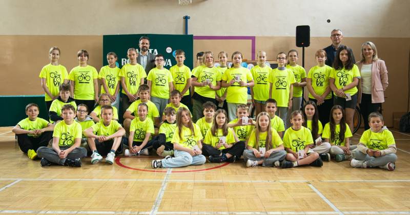 Wręczając uczniom ich pierwsze w życiu „prawa jazdy” prezydent Michał Litwiniuk wraz z dyrektorami rozdał też uczniom koszulki Rowerowej Stolicy Polski - by byli widoczni i bezpieczni w ruchu drogowym.
