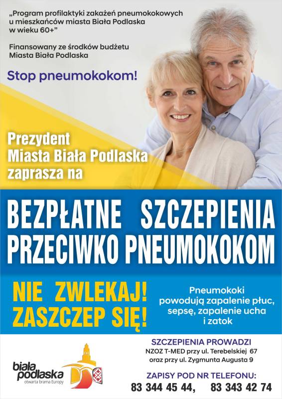 Szczepienia dla osób 60+ można wykonać w NZOZ T-MED przy ul. Terebelskiej oraz przy ul. Zygmunta Augusta w Białej Podlaskiej.