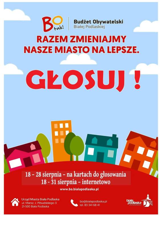 - do 31 sierpnia głosy można oddawać internetowo (Głosowanie – Budżet Obywatelski Miasta Biała Podlaska).