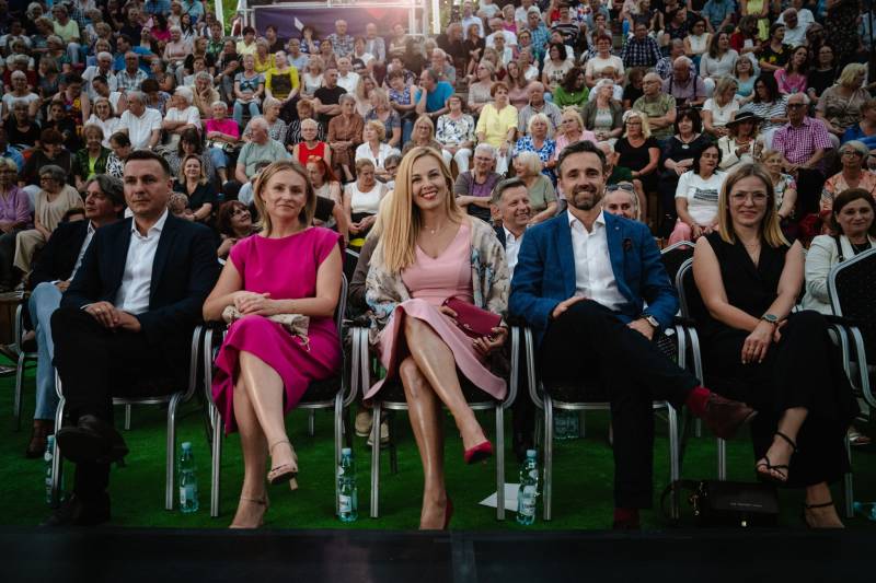 Goście odwiedzili nowy żłobek – świeżo ukończoną inwestycję, a wieczorem pani Magda wysłuchała koncertu „Miłość ci wszystko wybaczy” w wykonaniu artystów Teatru Wielkiego – Opery Narodowej, zorganizowanego w ramach 7. Festiwalu im. Bogusława Kaczyńskiego.