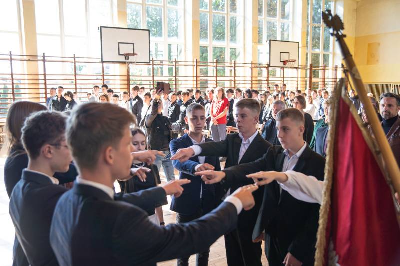 Podczas akademii ślubowanie złożyli uczniowie pierwszych klas, a ich starsi koledzy i koleżanki przygotowali akademię poświęconą patronom szkoły