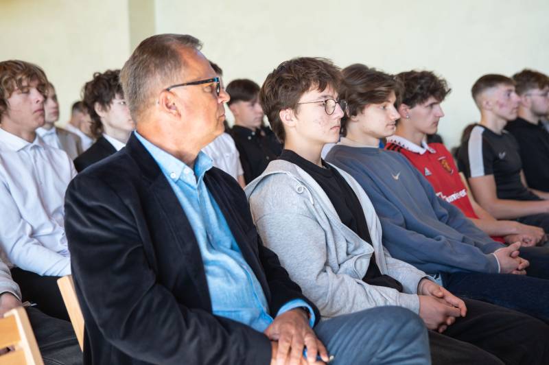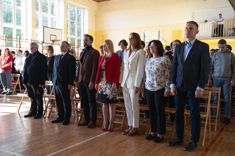 Uroczystość rozpoczęli prezydent miasta Michał Litwiniuk i dyrektor Ryszard Dołęga, którzy przypomnieli historię patronów szkoły i opowiedzieli o lotniczych tradycjach miasta