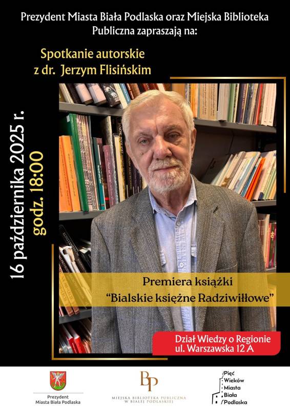 Miejska Biblioteka Publiczna w Białej Podlaskiej zaprasza na wyjątkowe wydarzenie, które odbędzie się 16 października o godzinie 18.00 w Dziale Wiedzy o Regionie MBP. Tego dnia będzie miała miejsce premiera najnowszej książki dr. Jerzego Flisińskiego pt. „Bialskie księżne Radziwiłłowe”.