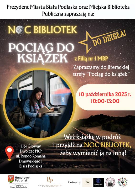 Miejska Biblioteka Publiczna w Białej Podlaskiej zaprasza na wyjątkowe wydarzenie – Noc Bibliotek pod hasłem „Do dzieła!”. Już 17 października na uczestników w każdym wieku czeka bogaty program atrakcji – literackich, muzycznych i artystycznych.