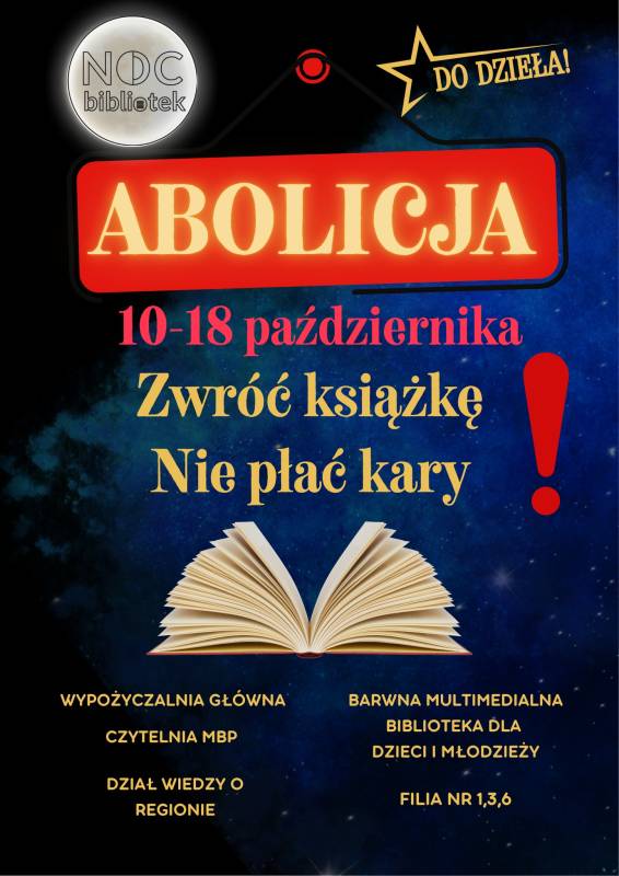 Dodatkowo od 10 do 18 października biblioteka prowadzi abolicję – w tym czasie można zwrócić zaległe książki bez opłat.