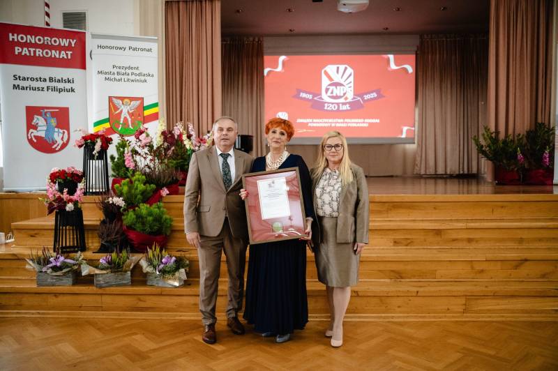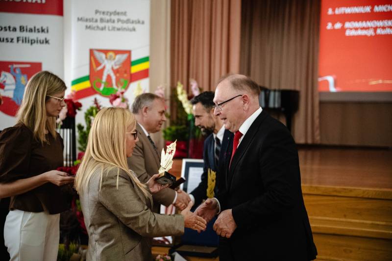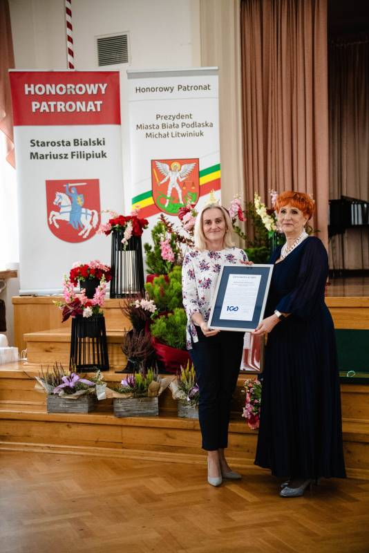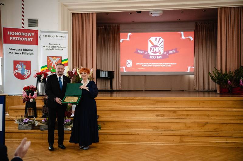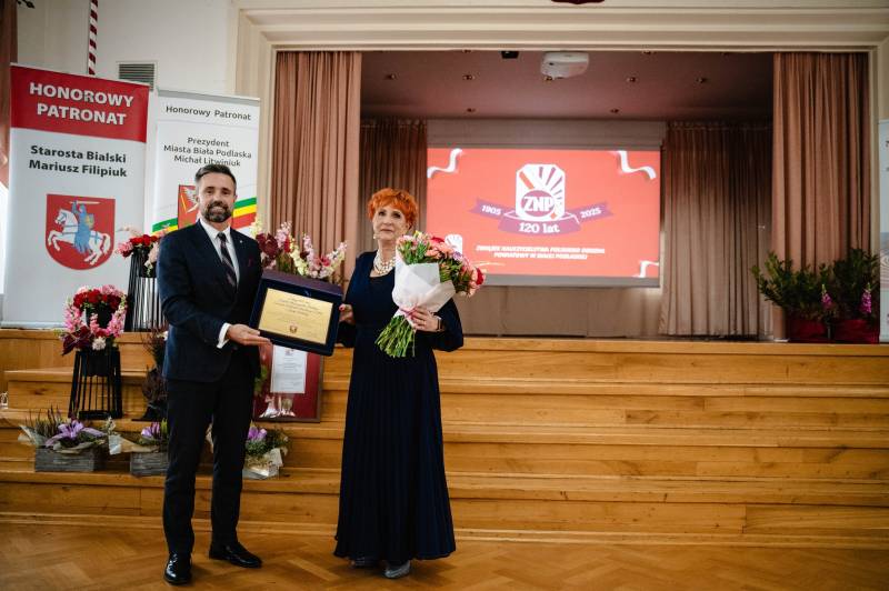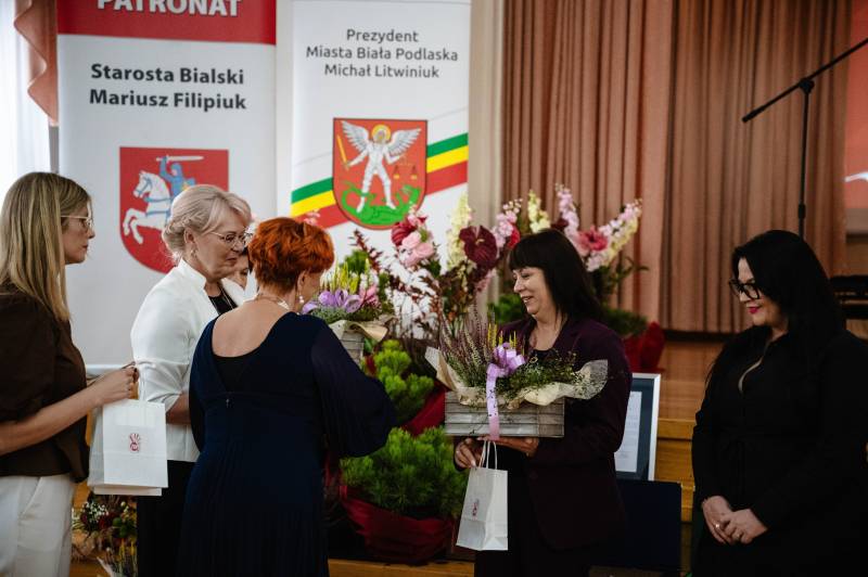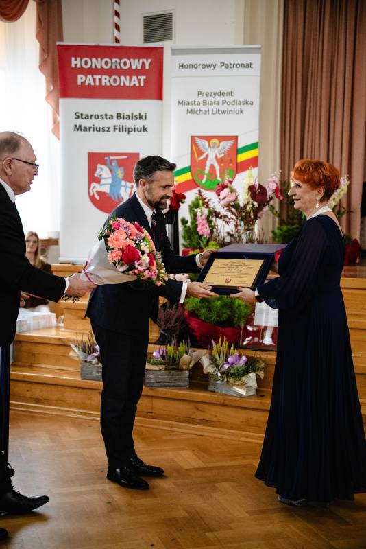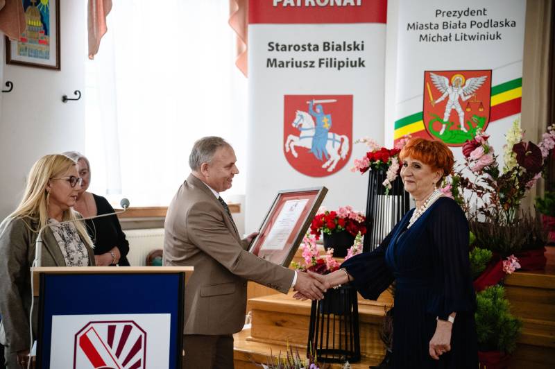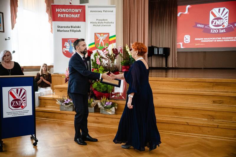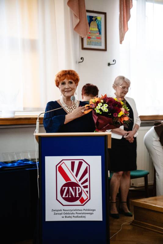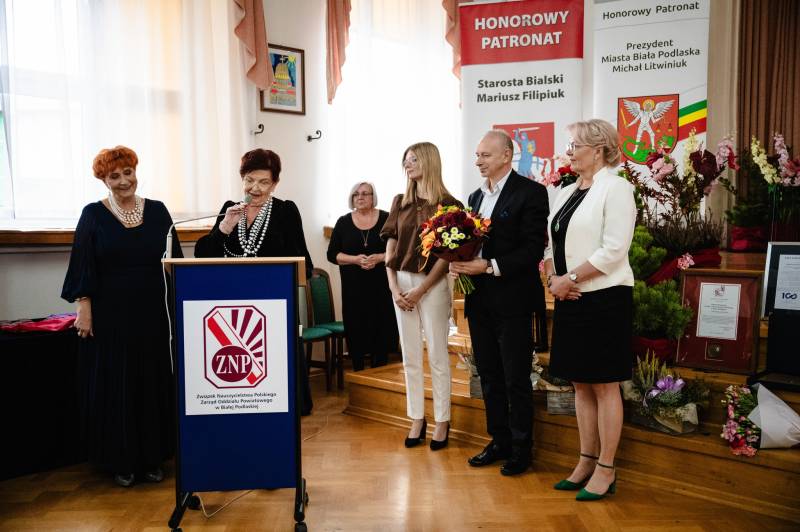Prezes ZNP Oddział Powiatowy w Białej Podlaskiej, Krystyna Rachoń-Kulicka, oraz całe środowisko nauczycielskie zostało uhonorowane za wkład w rozwój oświaty i współpracę z miejskim samorządem, w tym w programach doskonalenia zawodowego nauczycieli.