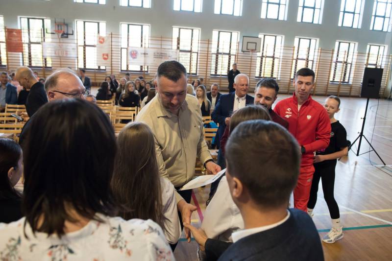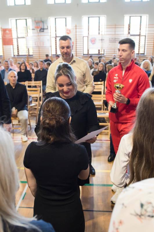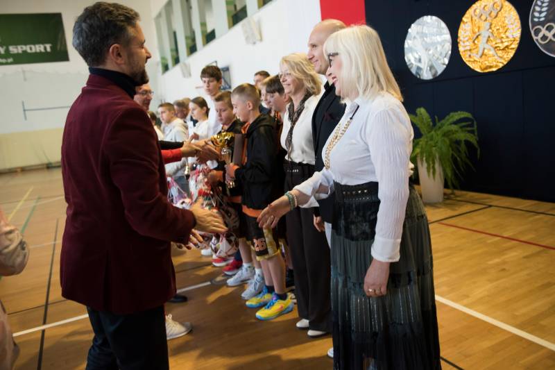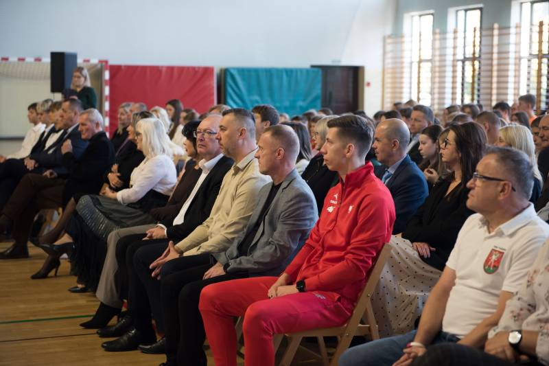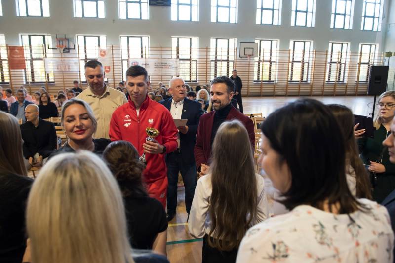 Podziękowano również Piotrowi Tarkowskiemu – Mistrzowi Polski w skoku w dal – za jego osiągnięcia i promocję sportu wśród dzieci i młodzieży.
