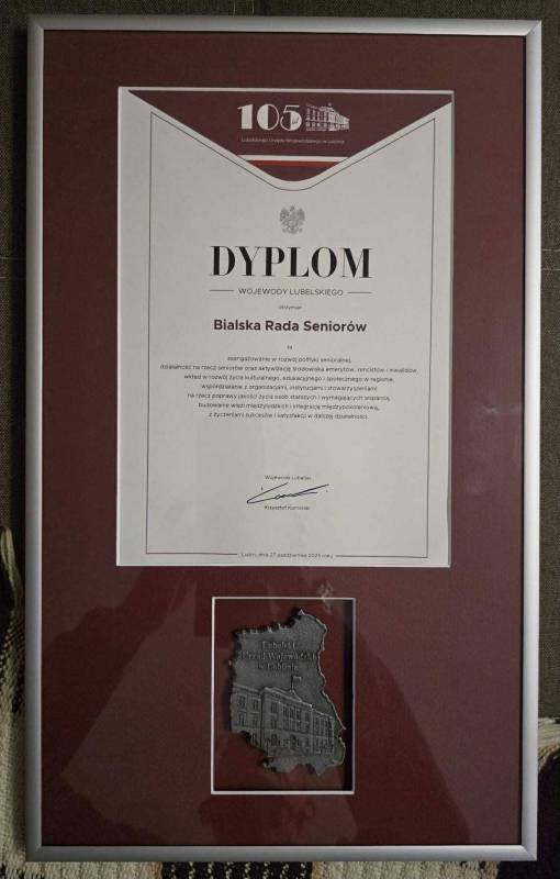 Podczas kongresu wojewoda lubelski Krzysztof Komorski uhonorował Bialską Radę Seniorów dyplomem uznania, doceniając jej społeczne zaangażowanie, działalność na rzecz osób starszych oraz realne inicjatywy poprawiające jakość ich życia.
