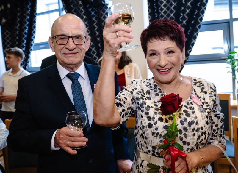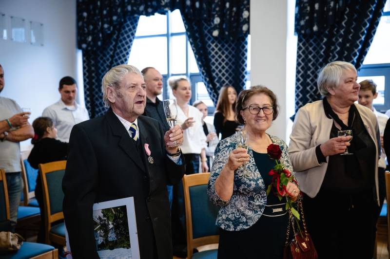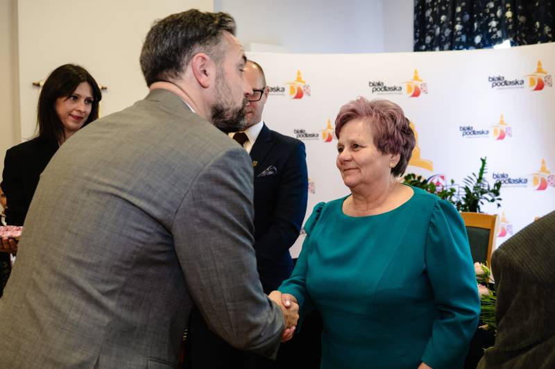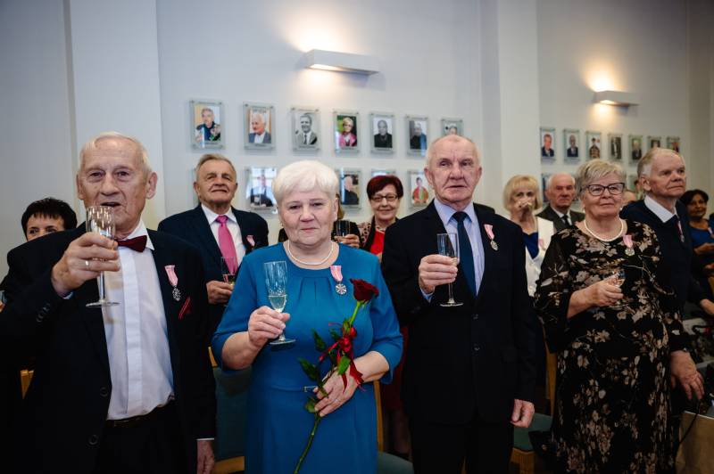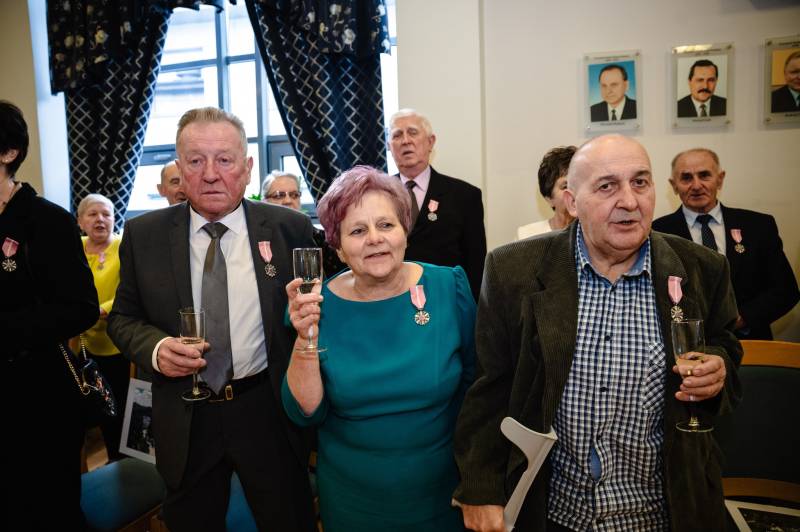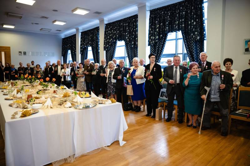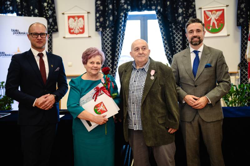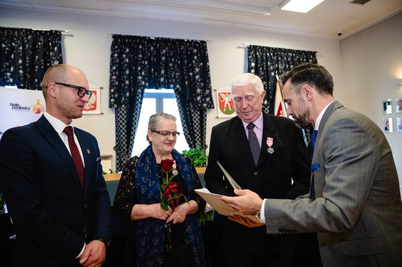 Złotym Jubilatom z Miasta Biała Podlaska i Gminy Biała Podlaska prezydent miasta Michał Litwiniuk wraz z wójtem gminy Konradem Gąsiorowskim pogratulowali pięknego jubileuszu i wręczyli medale za długoletnie pożycie.
