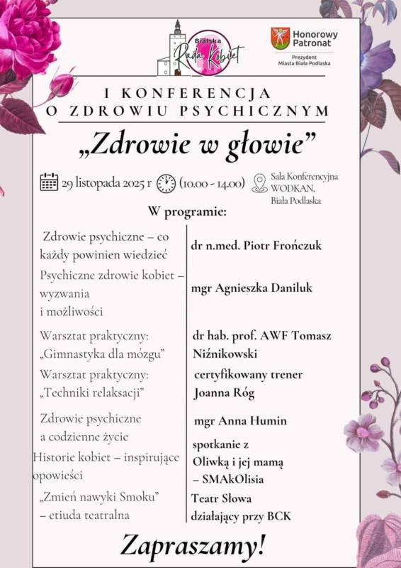 Bialska Rada Kobiet zaprasza na I Konferencję o Zdrowiu Psychicznym "Zdrowie w głowie".
