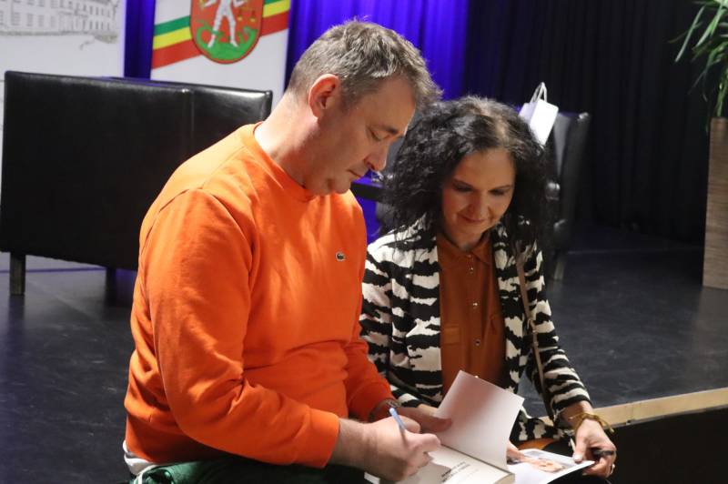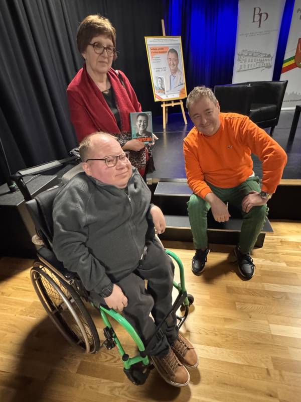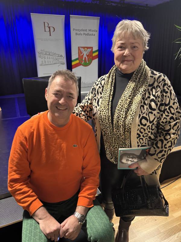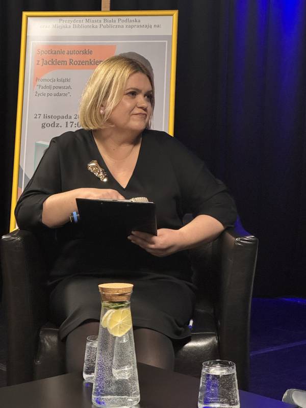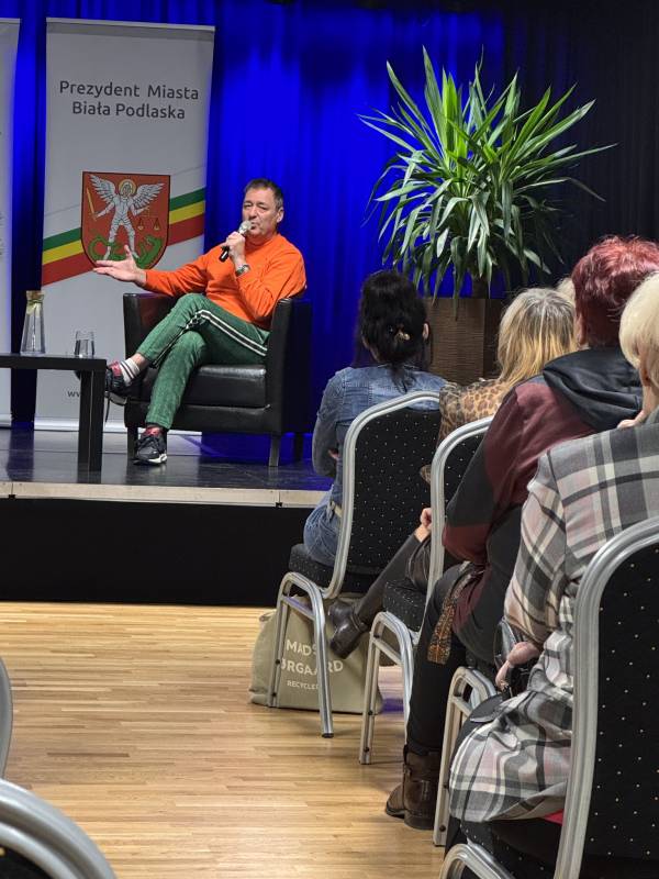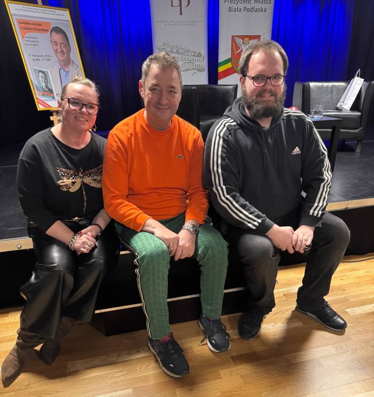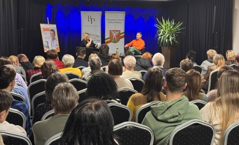 Miejska Biblioteka Publiczna w Białej Podlaskiej zaprosiła na spotkanie autorskie z aktorem, autorem książki „Padnij. Powstań. Życie po udarze”. W rozmowie z dyrektor MBP Renatą Szwed opowiadał o początkach swojej pracy aktorskiej, doświadczeniach w dubbingu, m.in. przy „Wiedźminie”, życiu po udarze, przyjaźniach w czasie choroby, roli w serialu „Barwy szczęścia” oraz swoich planach zawodowych.