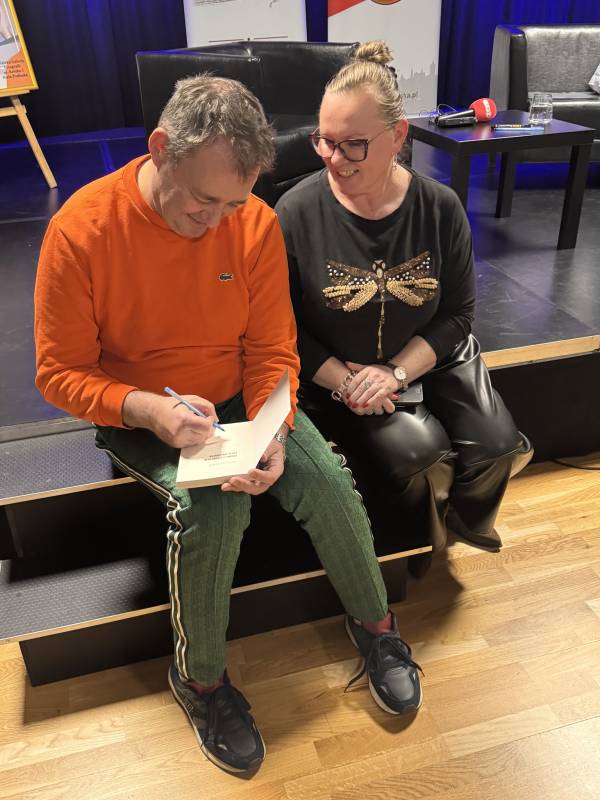 Aktor odpowiadał na pytania publiczności, podpisywał książki i chętnie pozował do zdjęć z czytelnikami.
