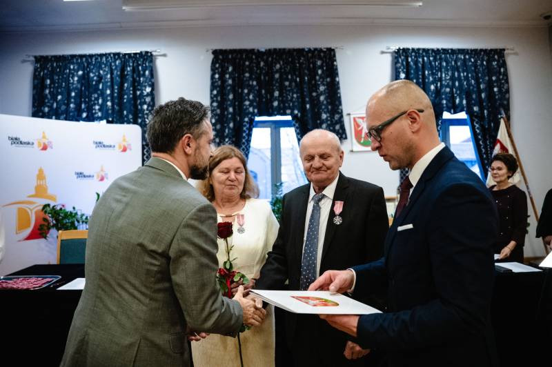 Prezydent miasta Michał Litwiniuk, wraz z wójtem gminy Konradem Gąsiorowskim, wręczyli medale za długoletnie pożycie. Wzniesiono również toast przy muzyce Kapeli Ludowej Podlasiacy, życząc jubilatom kolejnych szczęśliwych lat.