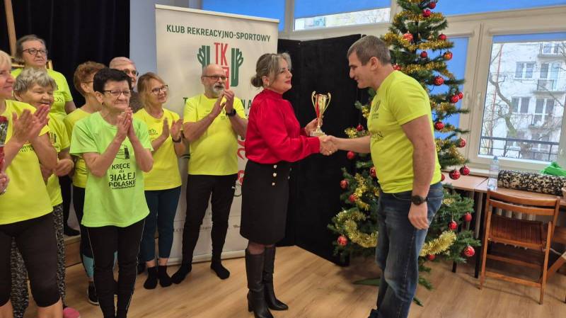 W imieniu prezydenta Michała Litwiniuka w mikołajkowym spotkaniu uczestniczyła Beata Demianiuk, naczelnik Wydziału Kultury, Sportu i Współpracy z Organizacjami Pozarządowymi, która odebrała puchary za wspieranie przez miasto działań TKKF.