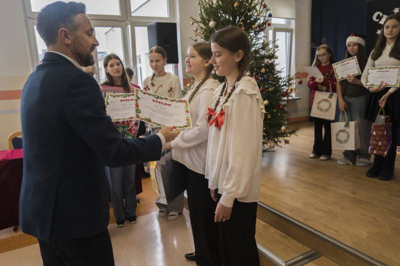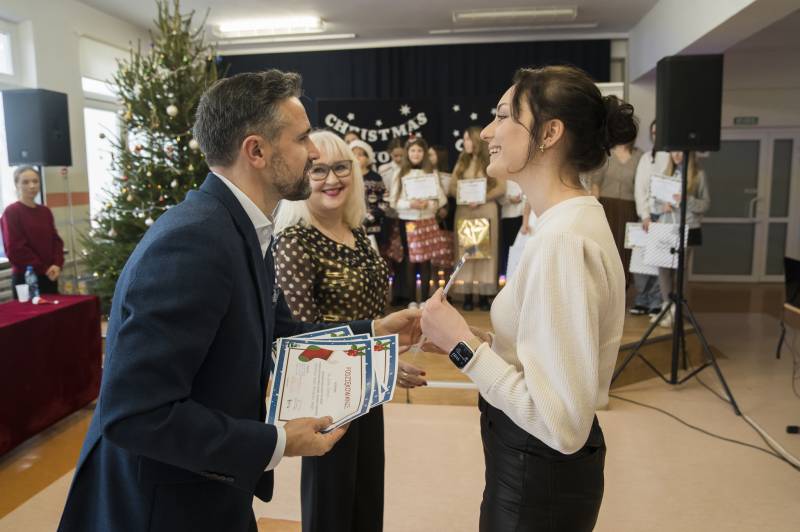 Uczestnicy przygotowali oryginalne i ciekawe interpretacje piosenek świątecznych w języku angielskim. Konkurs zakończył się przyznaniem dyplomów i nagród zwycięzcom, które wręczył Pan Prezydent.