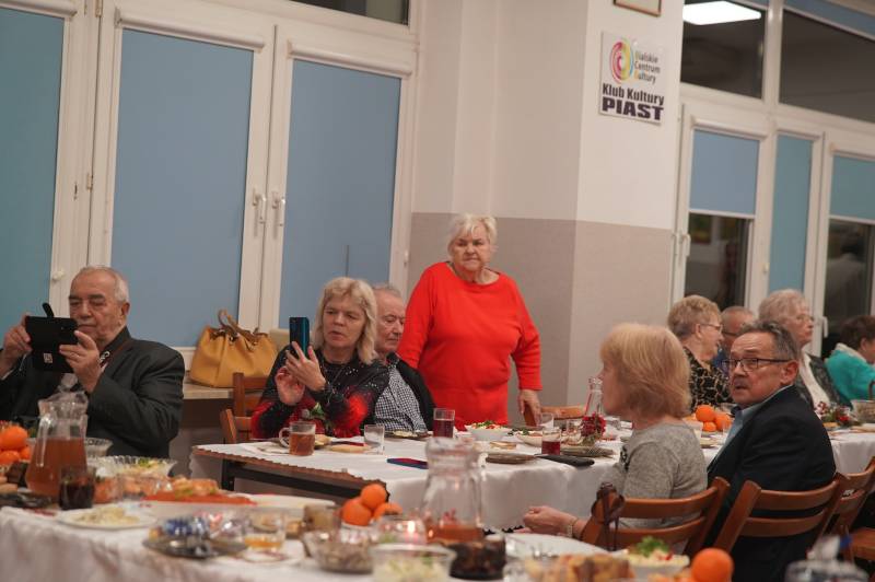 Spotkanie opłatkowe Klubu Seniora Wrzos funkcjonującego w Klubie Kultury PIAST – BCK24, kierowanego przez panią Urszulę Pietruczuk, upłynęło w miłej, radosnej atmosferze.